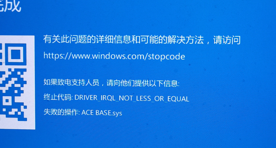 ACE BASE.sys蓝屏【终止代码:DRIVER_IRQL_NOT_LESS_OR_EQUAL】