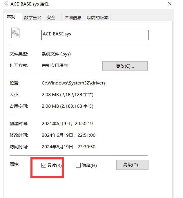 ace base.sys为TX游戏的反作弊系统相关文件,可能是和系统更新不兼容导致的蓝屏