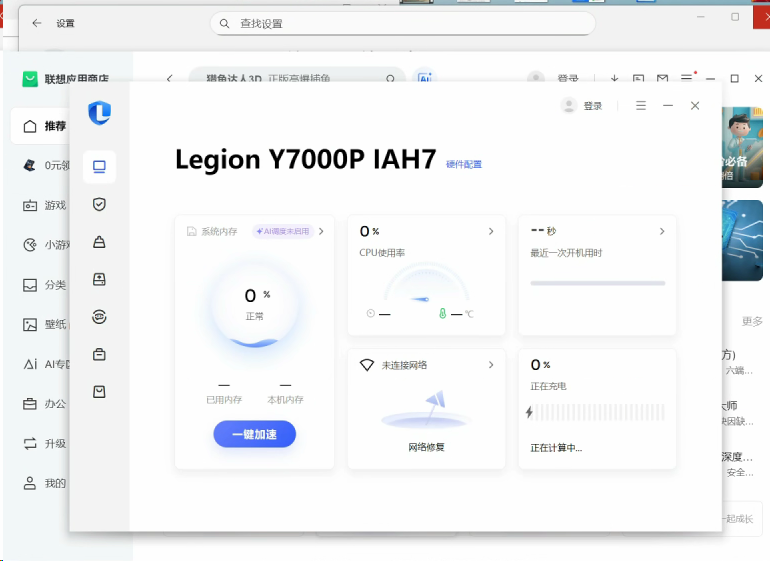 如图所示,联想管家也会卡死,目前没有什么很好的办法解决