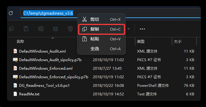 从 Microsoft 下载中心 下载 Device Guard and Credential Guard hardware readiness tool,并解压至空白文件夹。