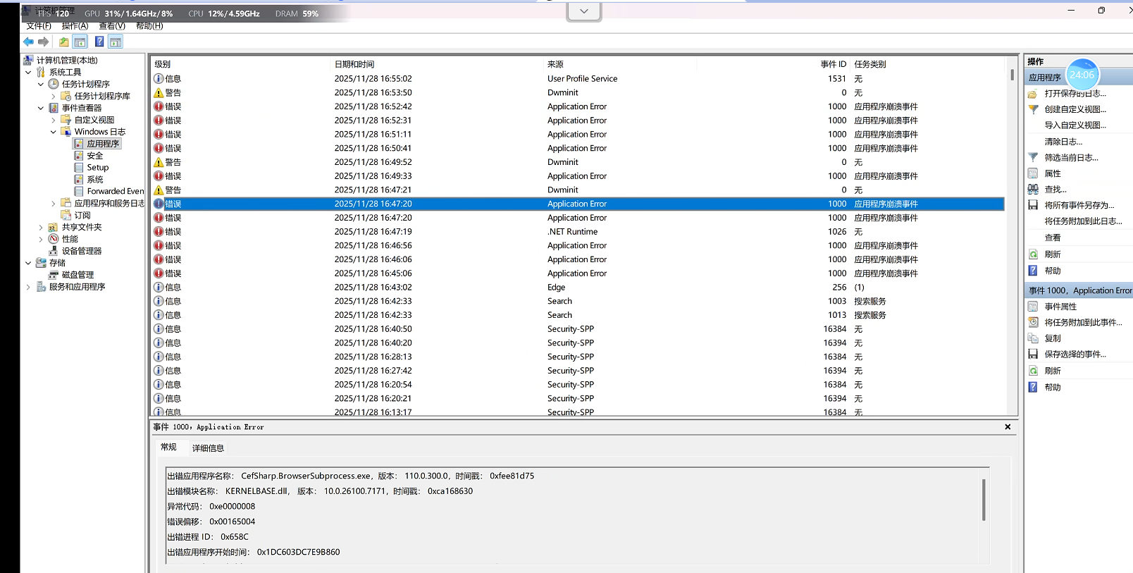 电脑会出现一系列报错弹窗内容大体相同,说是应用程序出现错误